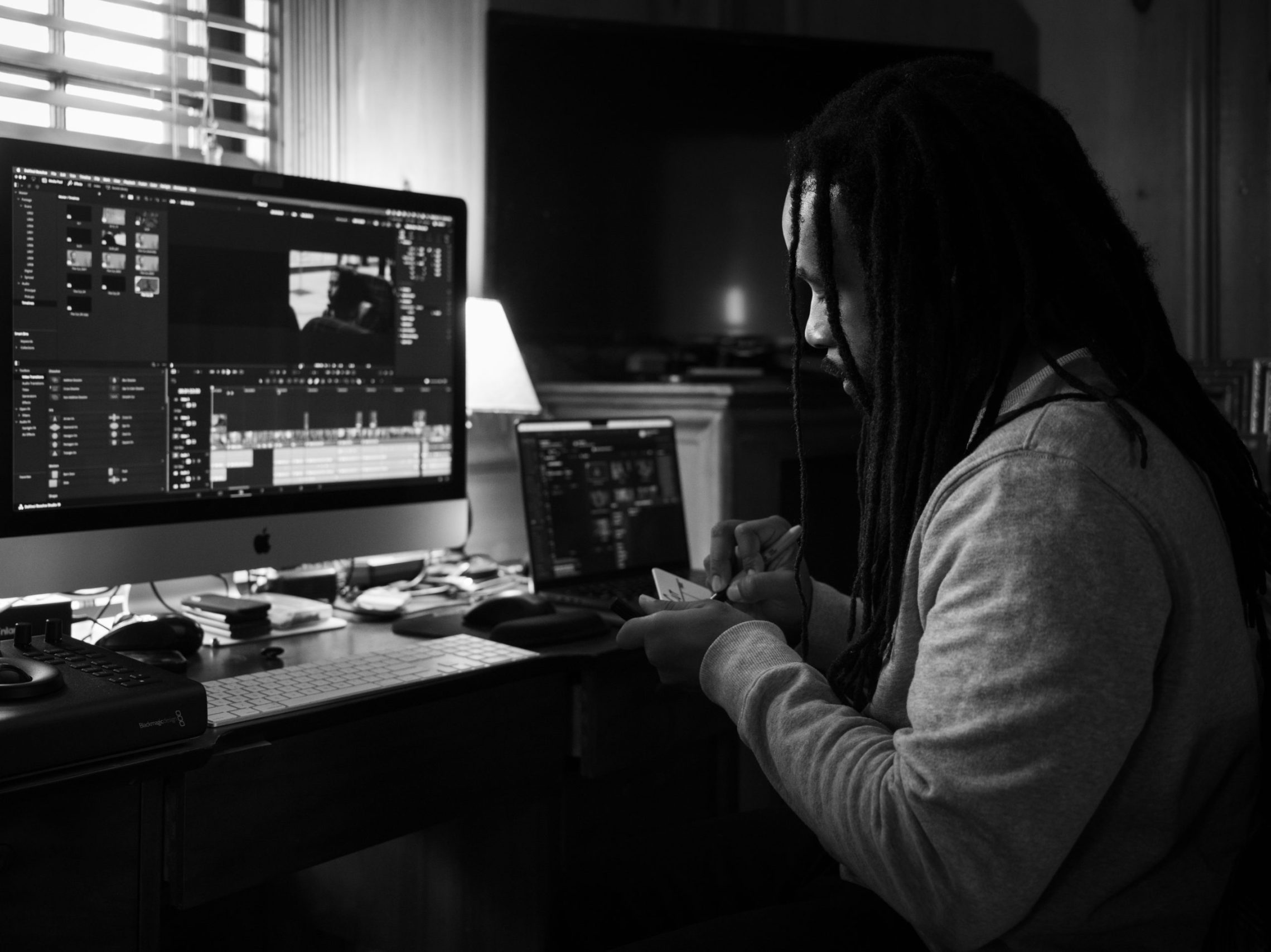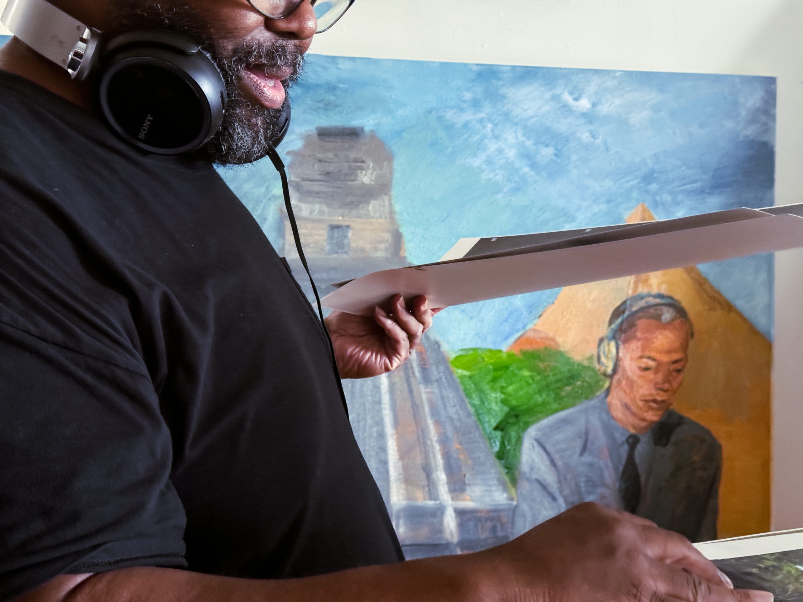 October 2024: Kahn Santori Davison (2015 Kresge Artist Fellow) in his office