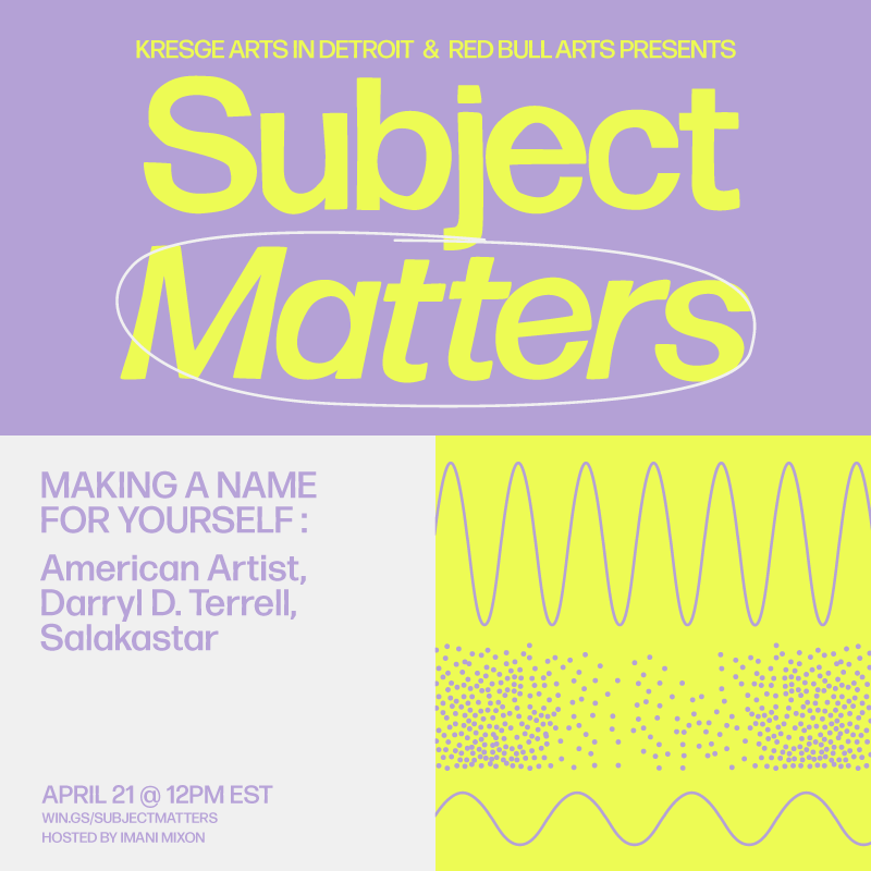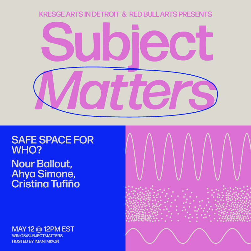SUBJECT MATTERS is a dialogue series that responds to contemporary sociopolitical truths within the context of individual artistic practices, presented Red Bull Arts Detroit and Kresge Arts in Detroit.